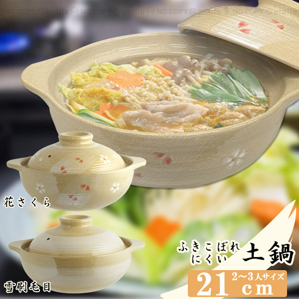 ふきこぼれにくい 土鍋 縁 高い 深型 どなべ 21cm 2人 3人 少人数 直火 はけめ 刷毛目リビング 陶磁器 鍋料理 鍋 刷毛目 7号 花さくら 桜 110622 雪刷毛目 110653 202210-03