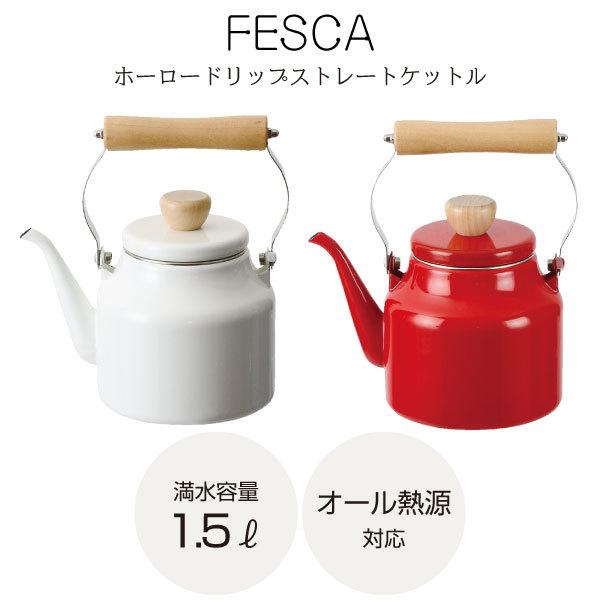 フェスカ ホーロードリップストレートケットル 1.5L / ホーロー ほうろう ドリップ ケットル ケトル やかん 湯沸し器 ポット 木製 天然木 コーヒー 珈琲