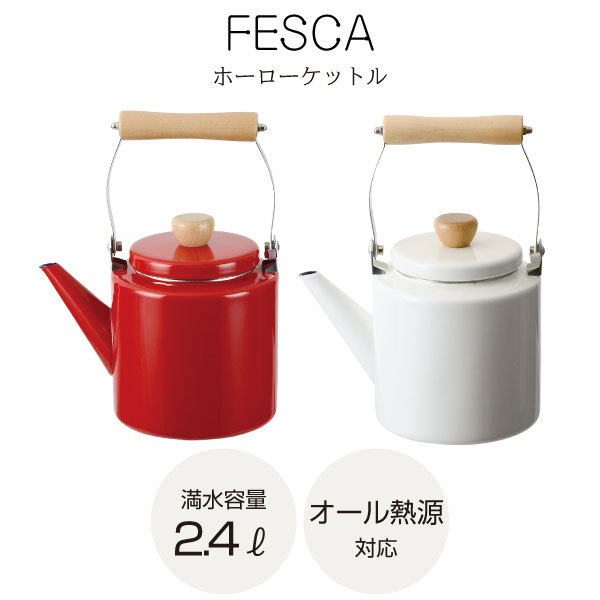 feska ホーロー ほうろう ドリップ ストレート ケットル ケトル やかん 湯沸し器 ポット シンプル ナチュラル かわいい 木目 木製 天然木 ハンドル コーヒー 珈琲 ホワイト 白 レッド 赤 509298 509304