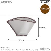洗って繰り返し使用できるステンレス製コーヒーフィルター2〜4cup用(1枚入り)。