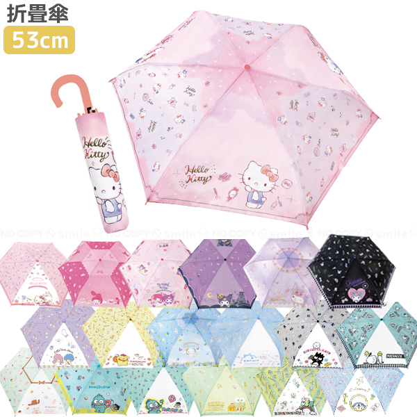 キャラクター サンリオ 折りたたみ傘 折り畳み傘 雨傘 6本骨 手開き 傘 かさ 雨具 耐風骨 グラスファイバー 折れにくい 持ち運び 夕立ち 親骨53cm かわいい おしゃれ キャラクター傘 ハローキティ キティちゃん マイメロディ マイメロ クロミ キキ&ララ ポムポムプリン シナモロールバッドばつ丸 ポチャッコ ハンギョドン けろけろけろっぴ ドラえもん