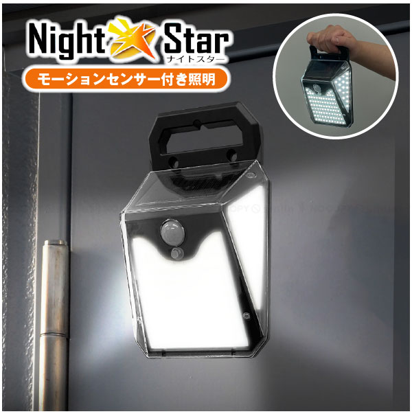 モーションセンサー付照明 マグネット ナイトスター 121灯 ハンドル付 30827 / センサーライト LED ライト 自動点灯 ソーラー 太陽光 充電 防雨 人感センサー