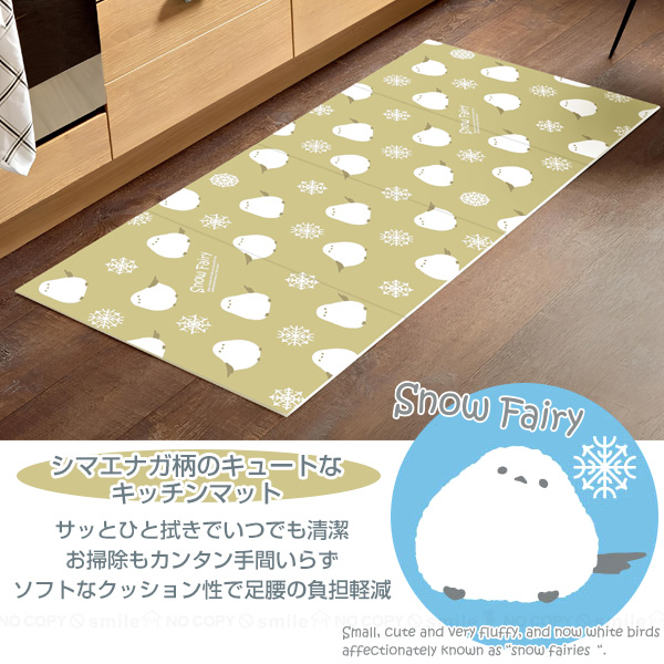 キッチンクッションマット 雪の妖精 シマエナガ / キッチンマット 台所 インテリア 拭ける すべり止め クッション キズ防止 汚れ防止 疲労軽減 動物 癒し