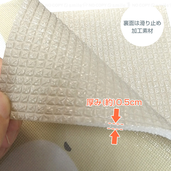 厚み(約)0.5cmポリエチレンのソフトなクッション性で足腰の負担軽減にも。