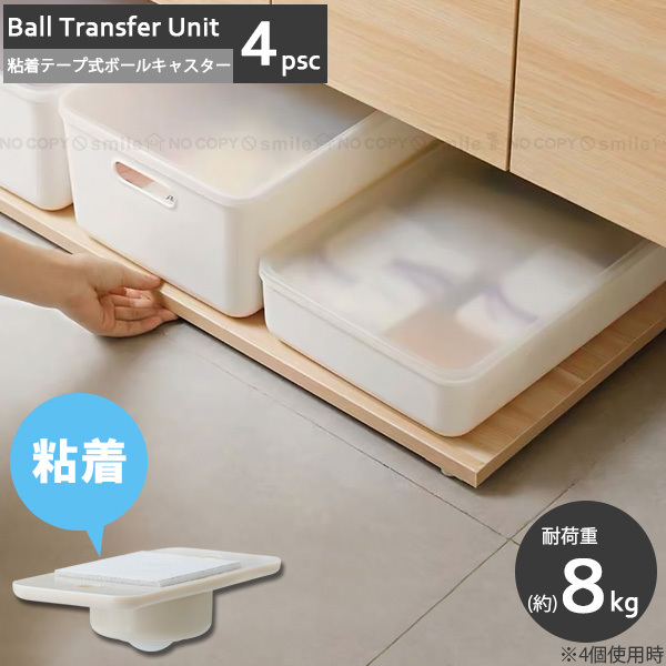 収納ケース等に貼るだけでキャスター機能を追加できる、粘着テープ式ボールキャスターです。