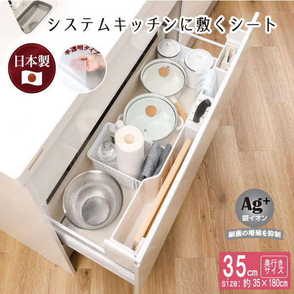 銀抗菌システムキッチンに敷くシート35 55377 / キッチンシート 収納シート 食器棚シート 抗菌 銀イオン 引き出し シンク下 汚れ防止 クッション 半透明 日本製