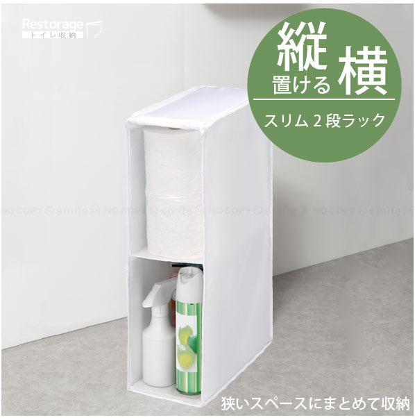 Restorage スリム2段ラック 85778 / ストック 収納 ケース スリム マルチ トイレ ペーパー サニタリー 掃除グッズ 収納ボックス フタ付 引き出し 目隠し