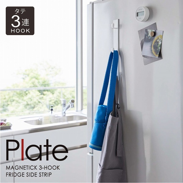 マグネット冷蔵庫サイド縦型3連フック 5250 プレート / Plate マグネット 冷蔵庫横 フック 縦 3連 エプロン ランチバッグ 引っ掛け 収納 キッチン 玄関