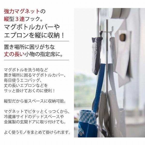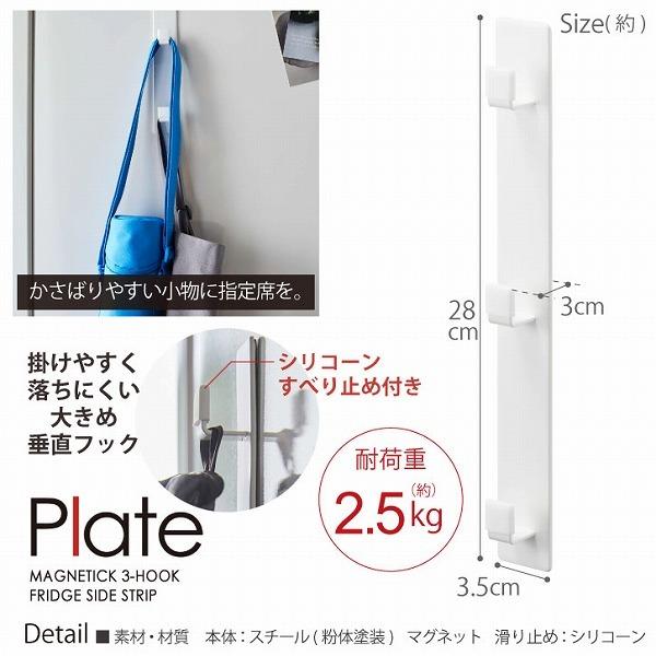 マグネット 冷蔵庫横 フック 縦 3連 エプロン ランチバッグ 引っ掛け 収納 キッチン 玄関 ドア 磁石 シンプル ホワイト Plate YAMAZAKI 山崎実業 202103-04