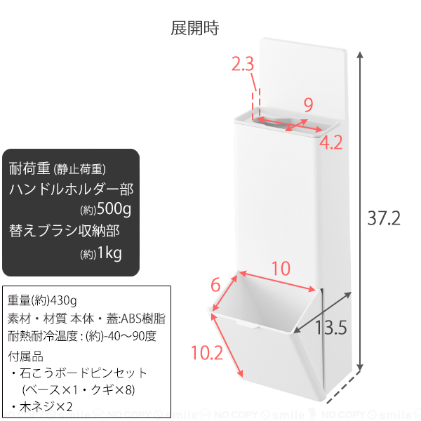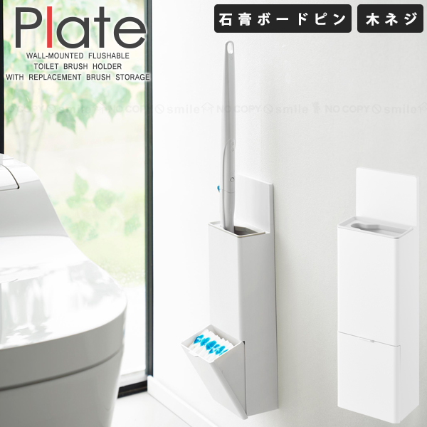 プレート Plate 山崎実業 / ウォール替えブラシ収納付き流せるトイレブラシホルダー 石こうボード壁対応 10032 / トイレ ブラシ 収納 流せるトイレブラシ
