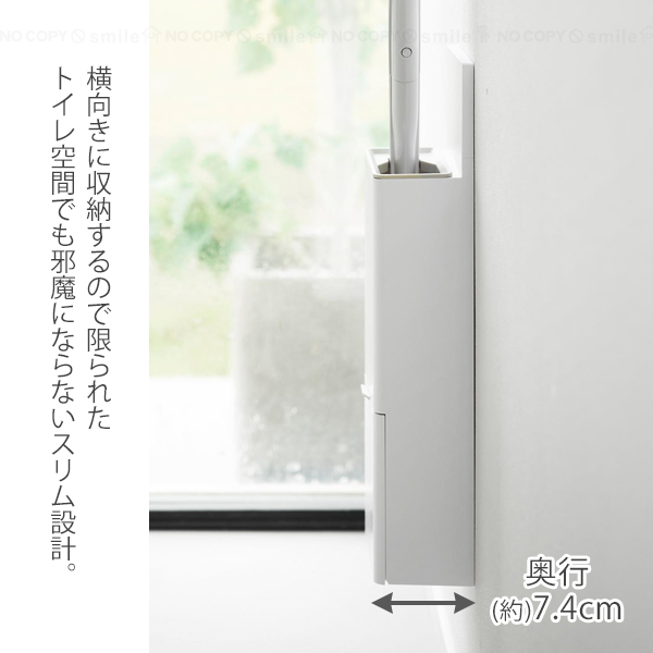 奥行が(約)7.4cmとスリムな設計で限られたトイレ空間でもスッキリと収納しておけます。