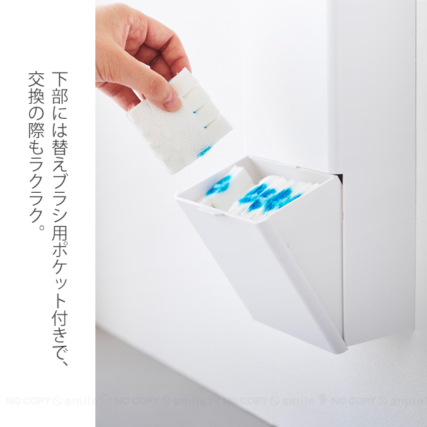 トイレ ブラシ 収納 流せるトイレブラシ用 壁面収納 替えブラシ収納付 ポケット 取替用 ストック 浮かせて 浮かせる スリム 邪魔にならない 掃除 時短 石こうボード 石膏ボード ピン取り付け 便利雑貨 ホワイト