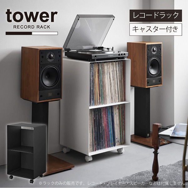 タワー tower 山崎実業 / レコードラック 「送料無料」/ レコード 収納 ラック 2段 コレクション キャスター付 LP盤 アルバム ディスプレイ スチール