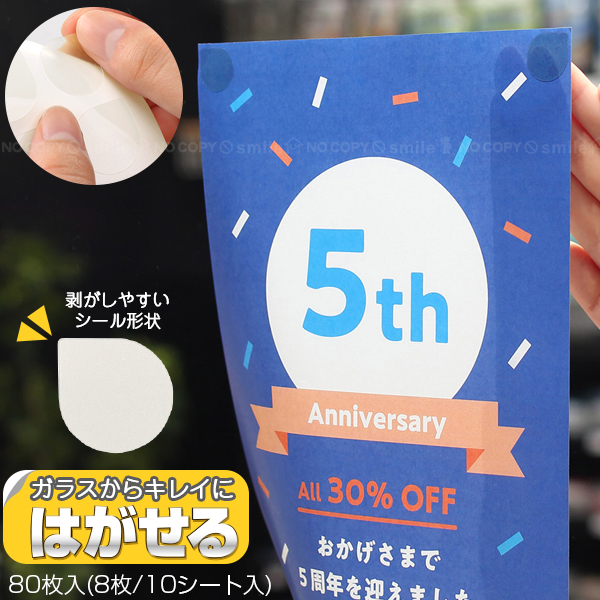 はがせる両面シール ガラス掲示用 TT0014 80枚入(8枚/10シート入)「普通郵便送料無料」/ 両面テープ シール 窓用 はがせる ガラス 掲示 ポスター
