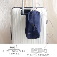 旅行やお出掛けで使うアイテムをスッキリ・おしゃれに収納するシンプルなトラベルシリーズ。スーツケースのハンドル部分に引っ掛けられるシューズケースです。