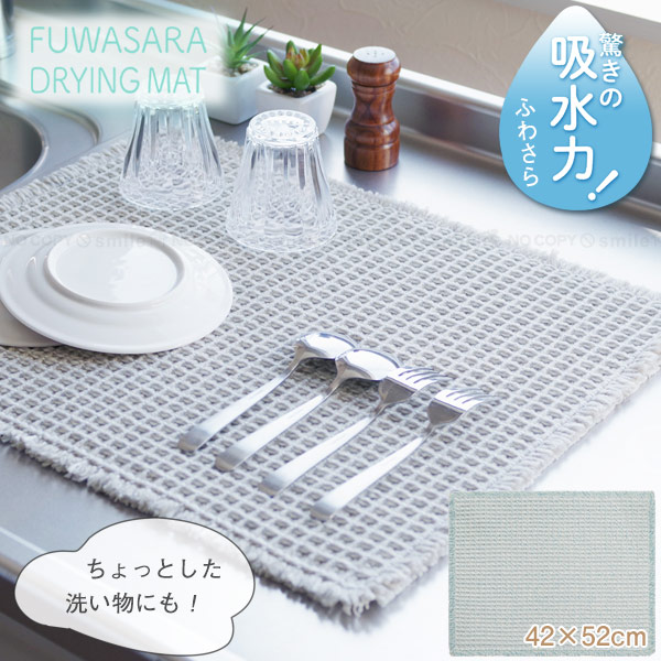 ふわさら吸水水切りマット 42×52cm 「ゆうパケ送料無料」/ 水切り 吸水パルプ マット タオル 食器 漆器 グラス カトラリー 小物 乾燥 吸水材 抗菌 防臭