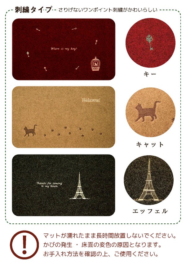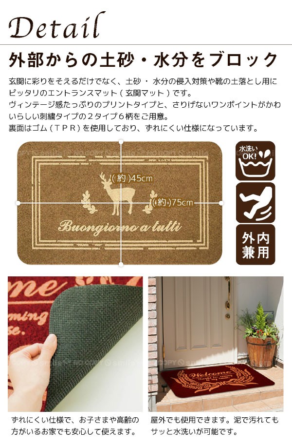 玄関マット エントランスマット 玄関用 エントランス 玄関 マット 屋外 屋内 室内 泥落とし ウェルカムマット ラグ ナチュラル ヴィンテージ すべり止め 水洗い ガーデニング 鹿 鍵 ネコ 猫 エッフェル