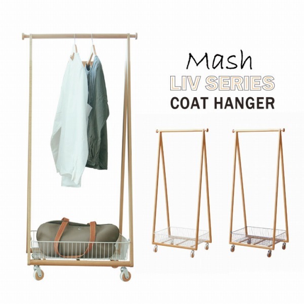 Mash Liv COAT HANGER LIV-CH1 「送料無料」/ コートハンガー ハンガーバー カゴ付き キャスター付き 衣類 収納 ラック 棚 マッシュ