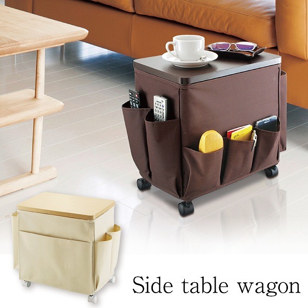 ソファやイスの傍に置いて、サイドテーブルとしても、収納ワゴンとしても使える高機能アイテム。