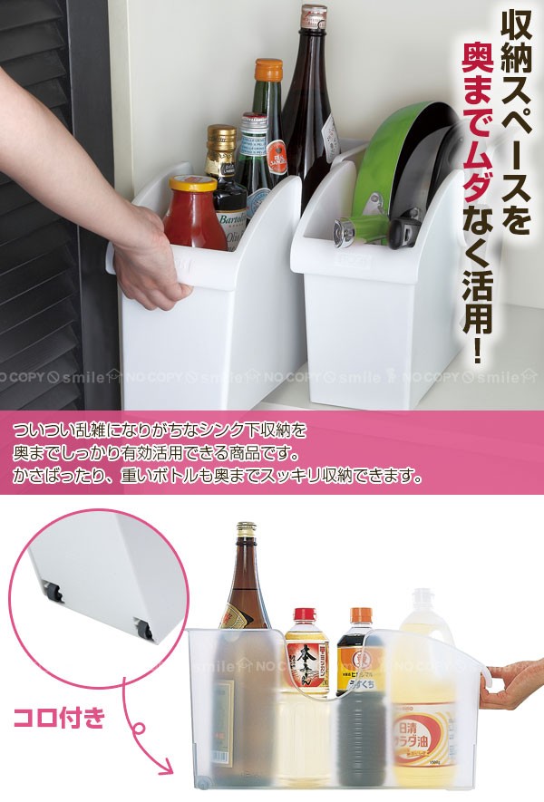 重いボトル類も、コロ付きでラクラク引き出すことができるシンク下引出しストッカーです。