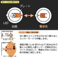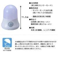 常時点灯モードの他、AUTOモードでは、周囲が暗い常態で動く人を検知した際にLEDが自動点灯。(約)20秒で自動消灯します。