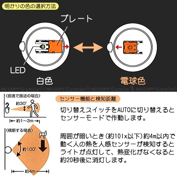 LED ライト 自動点灯 センサー 自動消灯 人感センサー 明度センサー 20秒点灯 寝室 夜間 白色LED 電球色LED 白 オレンジ 癒しグッズ 防水 野外 吊り下げ フック付き 階段 ベランダ クローゼット インテリア