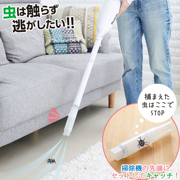 虫 むし ムシ 害虫 掃除機 吸う 触らず 捕まえる キャッチ リリース 部屋の中 捕獲 駆除 逃がす 蜘蛛 子供 昆虫 観察 ノズル 先端 差し込む アタッチメント クリア 環境にやさしい 日本製