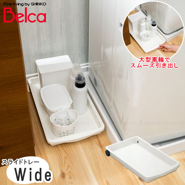 ワイド トイレ 洗濯機横 洗面下 洗面台 収納 スライド トレー 棚 車輪 スムーズ 引き出せる キッチン Belca ホワイト 白 202011-02