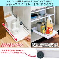 トイレや洗濯機横や洗面台下のスペースを奥まで有効に使えるスライドトレーのワイドタイプ。