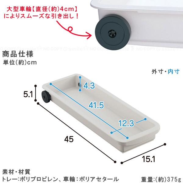 奥側に大型の車輪が付いているので、少し重いものを載せてもスムーズに引き出せて、棚奥にある物も出し入れが簡単に、洗剤・スポンジなどの掃除道具をまとめるなど色々な使い方ができます。