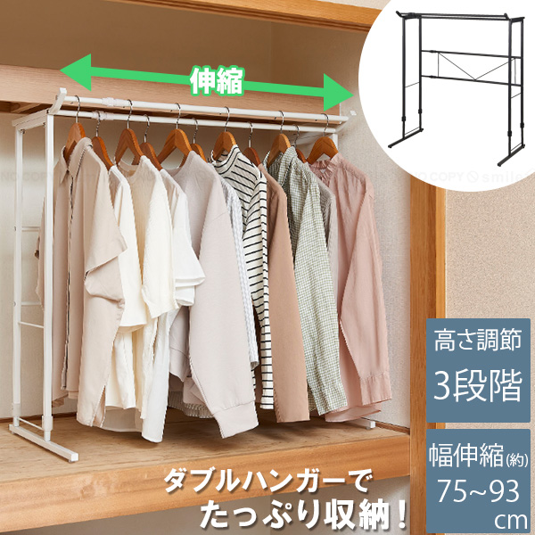 押入れ・クローゼットなどのスペースを有効活用できる伸縮式のダブルハンガーラック。