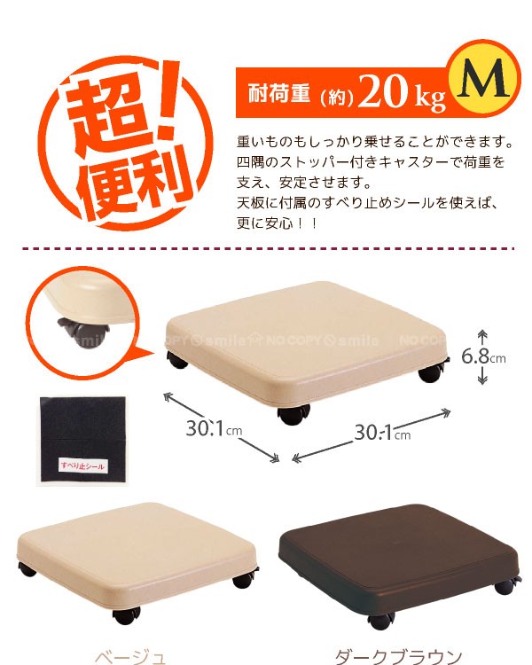 耐荷重(約)20kgと丈夫で4つのキャスターでしっかり荷重を支えます。