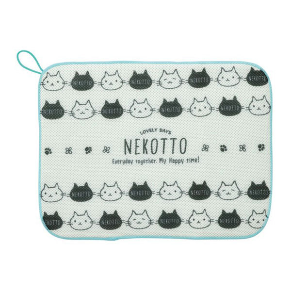 KM1 水切り マット ループ フック 吊るせる 畳める たためる 食器 乾燥 マット クッション マイクロファイバー 立体メッシュ 一時置き 吸水 シンプル 洗濯 丸洗い 水色 ネコ ねこ 猫 かわいい ねこっと
