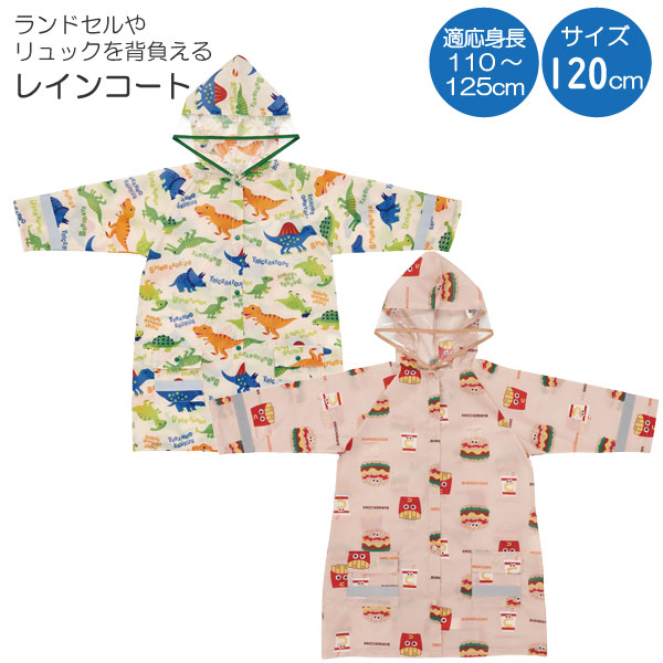 レインコート 適応身長110〜125cm キャラクター 子供用 キッズ 子供 レインコート 雨具 カッパ 反射テープ 小学生 低学年 ランドセルもカバー 通学 スケーター ディノサウルス バーガーコンクス 恐竜 ハンバーガー ポテト RACO1N