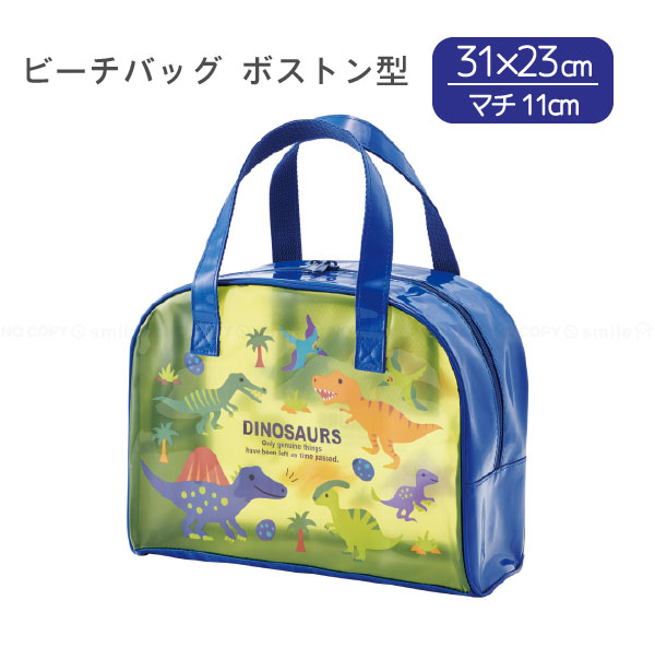 ビニールビーチバッグ ボストン型 ディノサウルスピクチャーブック 「ゆうパケ送料無料」/ プールバッグ ビーチバッグ スイミング バッグ ビニール スケーター