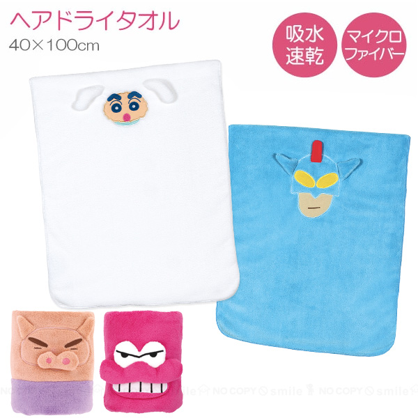 子供 子供用 キッズ スイミング プール お風呂 吸水 吸湿 速乾 マイクロファイバー タオルドライ タオル 髪の毛 髪用 ヘアー かわいい ふわふわ やわらかい ベビー用 ベビー 赤ちゃん スケーター クレヨンしんちゃん しんちゃん シロ アクション仮面 ぶりぶりざえもん ワニ山さん TOH1