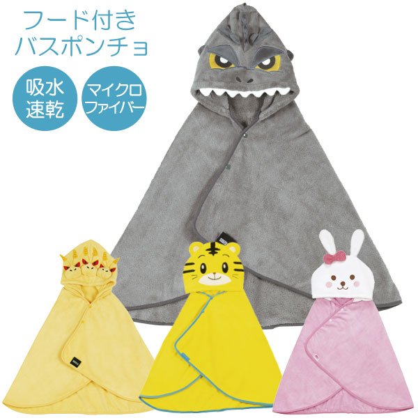 吸水速乾 フード付きバスポンチョ フード付きバスタオル フード付きタオル 子供 子供用 キッズ スイミング プール 海 日焼け防止 お風呂 吸水 吸湿 速乾 マイクロファイバー 帽子 フード タオルドライ ベビー 出産祝い ギフト かわいい スケーター キャラクター キングギドラ ゴジラ しまじろう メルちゃん うさぎ ピンク イエロー かっこいい 男の子 女の子 BPO1 202510-00