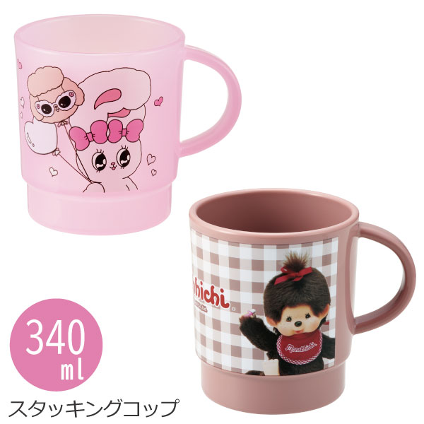 スタッキングコップ 340ml スタッキング コップ カップ マグカップ プラスチック プラ 割れにくい 取っ手 取っ手付き マイカップ 大きめ ランチ オフィス かわいい 日本製 スケーター エスターバニー ウサギ ピンク モンチッチ キャラクター グッズ KP1