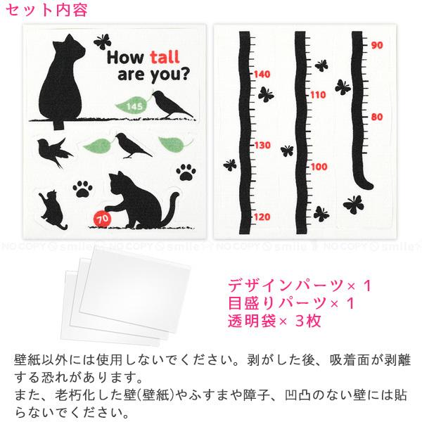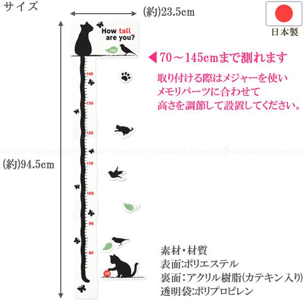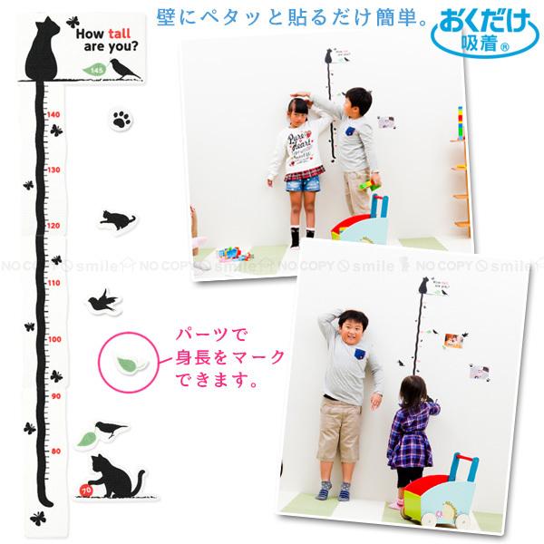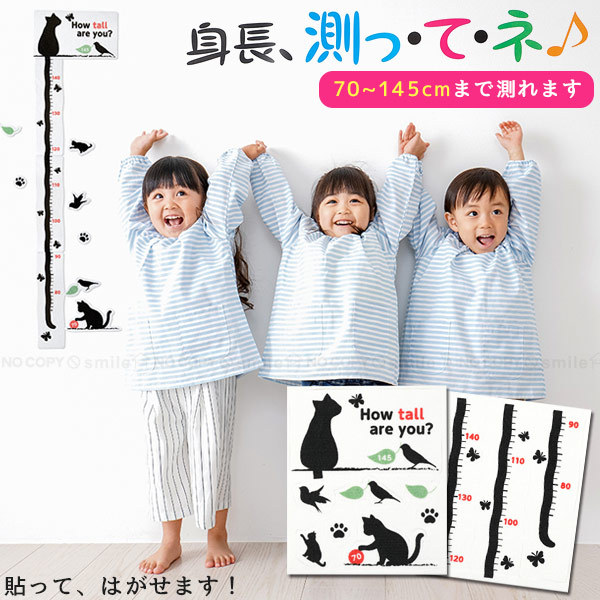 子供 身長 身長計 吸着おくだけ吸着 貼って剥がせる 壁 壁紙に貼る 成長記録 猫 ねこ 202110-04