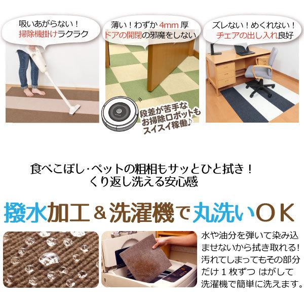 タイルカーペット 洗える おくだけ吸着 撥水マット 薄くてずれない つまずかない バリアフリー 汚れ防止 ベビー キッズ 子ども部屋 ペット 介護 床暖房対応 グリーン ベージュ グレー アイボリー ブラウン ダークグレー ブルー ローズ ピンク オレンジ