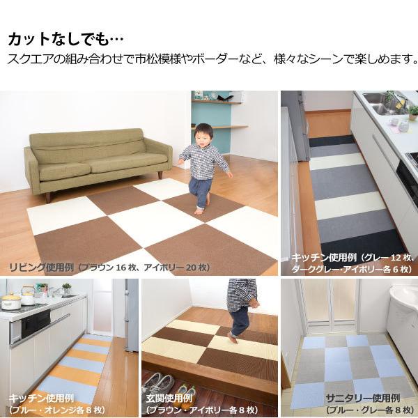 床暖房対応!使いたいスペースにあわせてハサミで手軽にカットでき、タイルが余ったら、ゴミ箱の下や出入口などに敷いておけば汚れ防止にも♪
