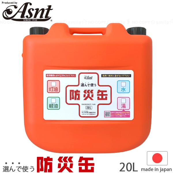 ASNT 防災缶 20L 「送料無料」/ 非常用 災害用 避難用品 防災グッズ 大容量 ポリタンク 容器 選べる 多用途 マルチ 灯油缶 軽油 給水 お湯タンク 日本製