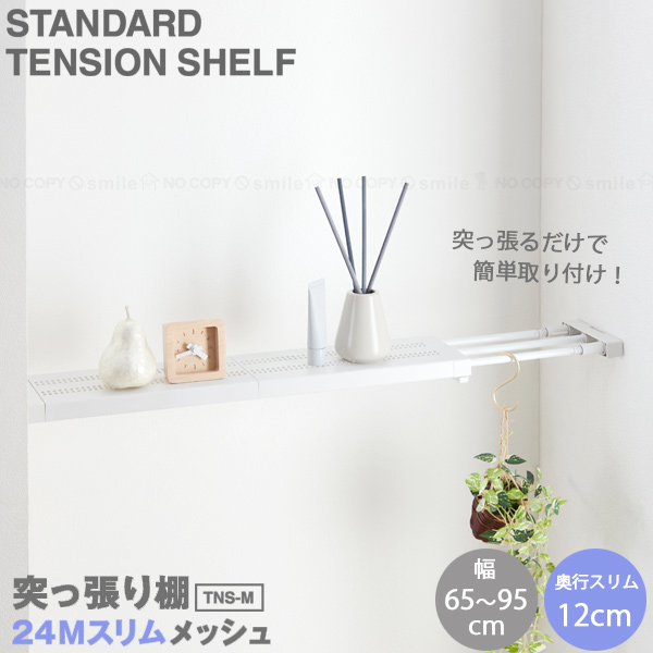 突っ張り棚24M スリムメッシュ TNS-M / つっぱり 突っ張り棚 スリム 突っ張り 突っ張り棒 テンションロッド フラット棚 シンプル おしゃれ