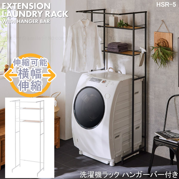 洗濯機ラック ハンガーバー付き HSR-5 「送料無料」/ ランドリーラック 洗濯機ラック 洗濯機棚 ランドリー収納 角パイプ タオル掛け ハンガー ラック