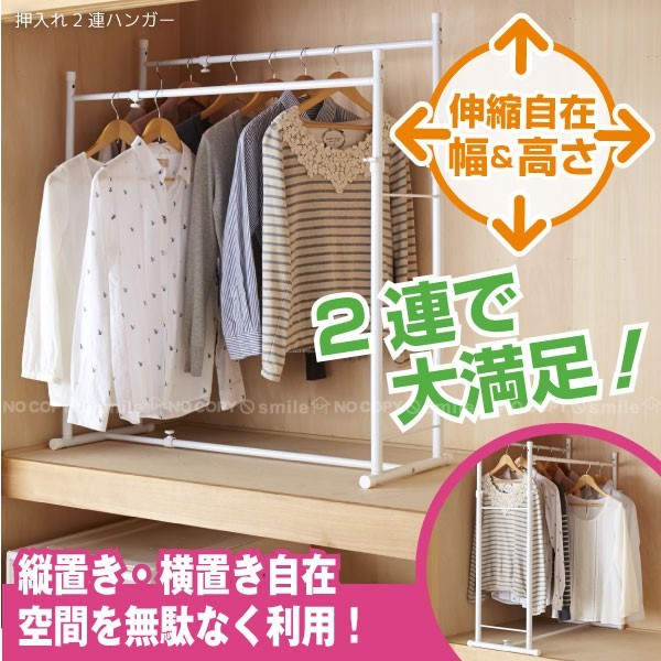 伸縮押入れ2連ハンガー OHW-20 「送料無料」/ ハンガーラック 押入れ クローゼット ハンガーシェルフ 衣類収納 押入れ収納