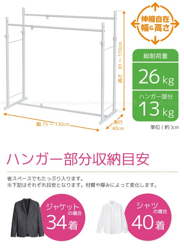 ハンガーラック 押入れ 伸縮押入れ2連ハンガー OHW-20 クローゼット ハンガーシェルフ クローゼットハンガー 2段パイプハンガー 2連洋服掛け 衣類収納 押入れ収納 収納 省スペース 幅 高さ 伸縮