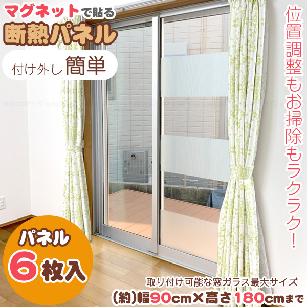 マグネットで貼る断熱パネル 6枚入 U-Q1075 / 窓ガラス 断熱 シート パネル マグネット 磁石 着脱 暖房効果アップ 寒さ対策 節電 省エネ エコ 目隠し