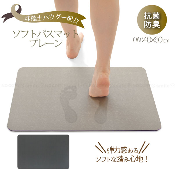 珪藻土入り ソフトバスマット プレーン 40×60cm / 珪藻土パウダー 珪藻土 バスマット 足元マット 割れない 洗える 水洗い 柔らかい ソフトタイプ 滑らない