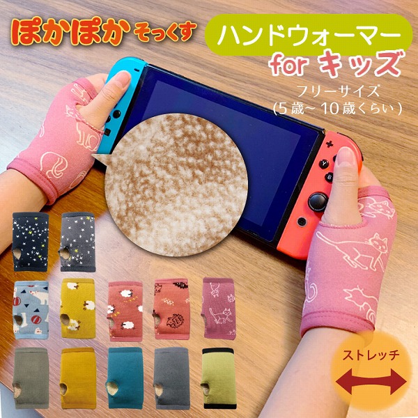 ハンドウォーマー 子供用 あったか 指なし手袋 手首 手の甲 起毛 ボア ストレッチ 幼児 園児 小学校 低学年 5歳〜10歳 防寒 節電 かわいい 202110-04