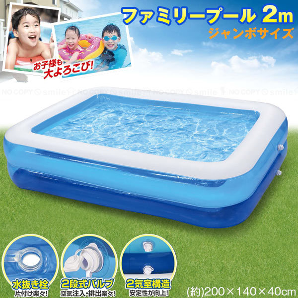 ファミリープール 2m 「送料無料」/ プール 家庭用プール ビニールプール ジャンボサイズ ファミリー 幅2m 四角 長方形 ガレージ 駐車場 庭 玄関 子ども 夏